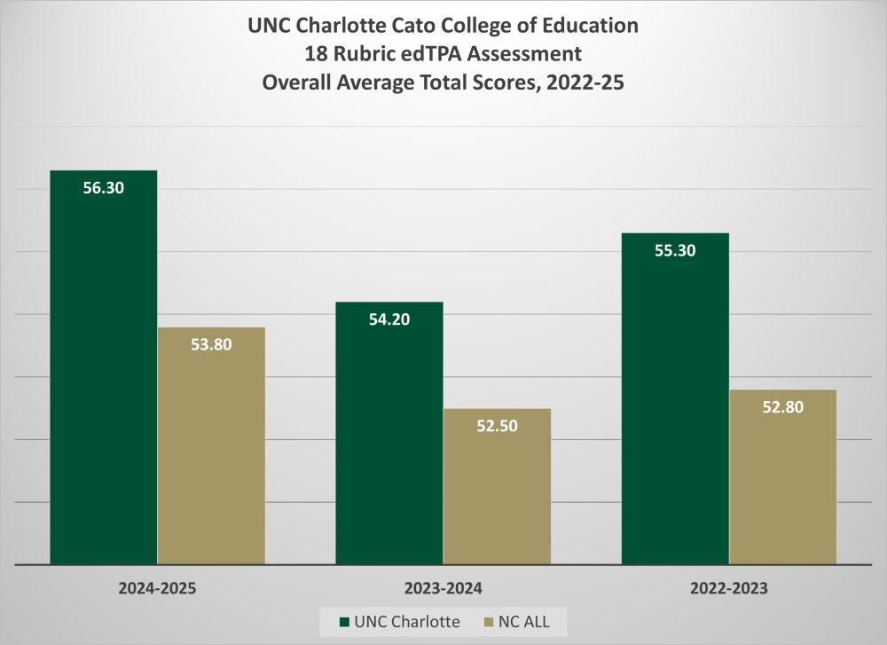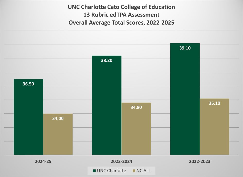 The data tables below show overall average total rubric scores for UNC Charlotte in comparison with all NC average total rubric scores.